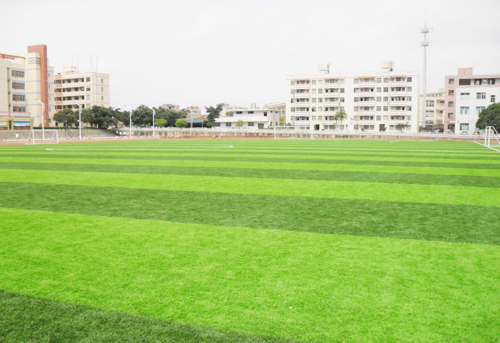 *人造草場(chǎng)地使用率高,既減震、以無(wú)噪音、安全無(wú)毒、富有彈性,阻燃性能好等特點(diǎn),很適合于學(xué)校使用,是現(xiàn)時(shí)最佳的活動(dòng)、訓(xùn)練、比賽場(chǎng)地。
